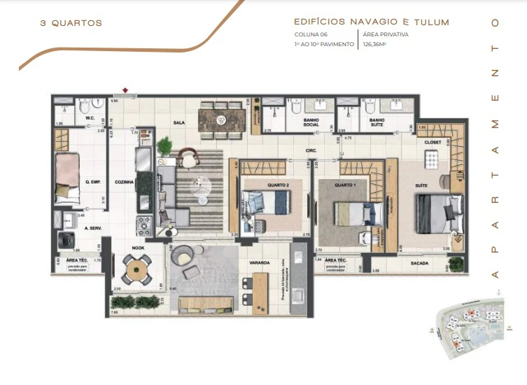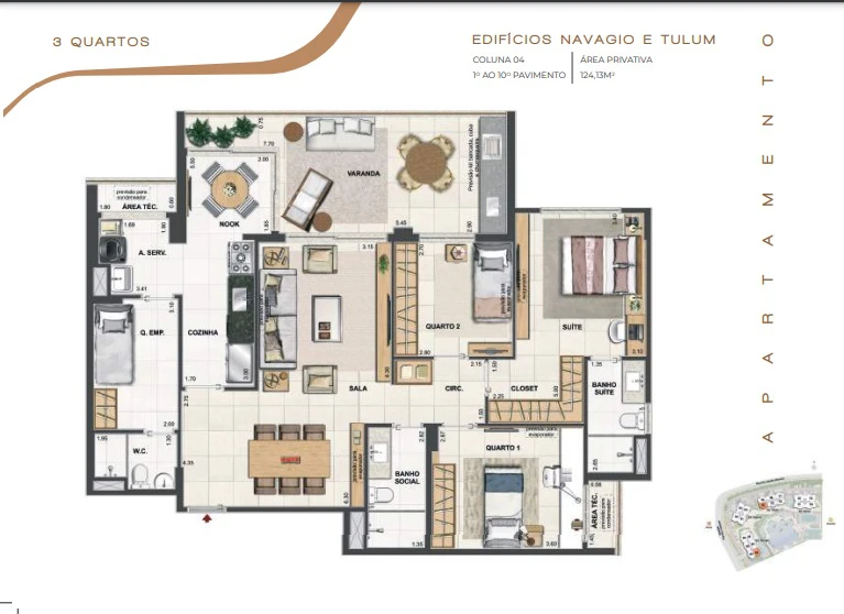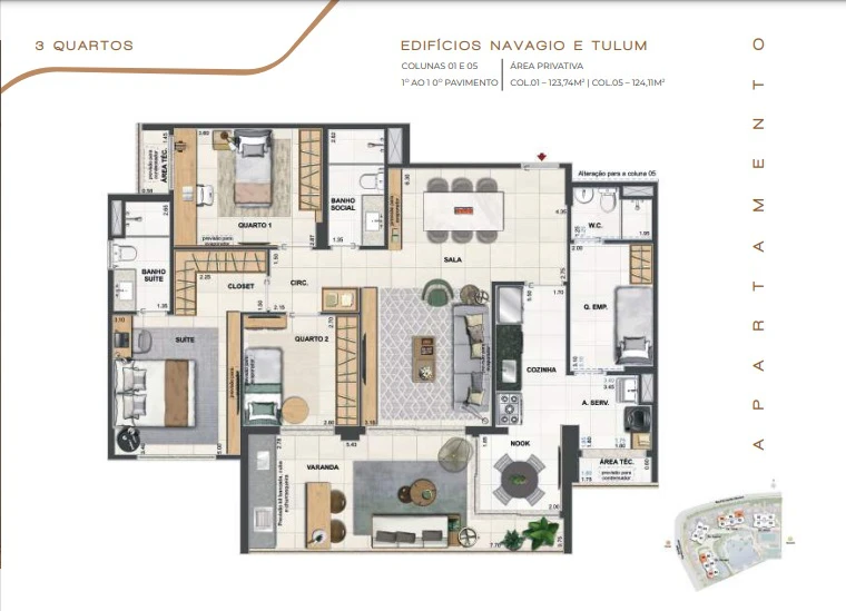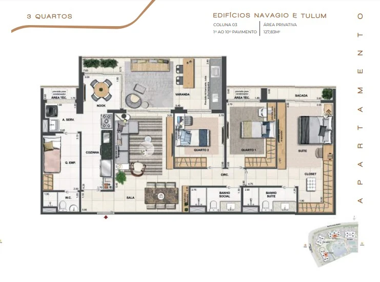 Apartamentos de 3 quartos 122m² até 127m² e Dependência
