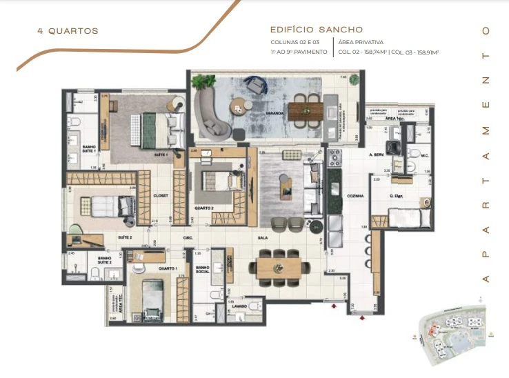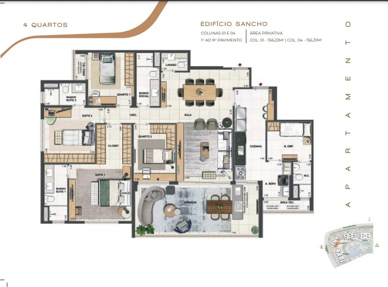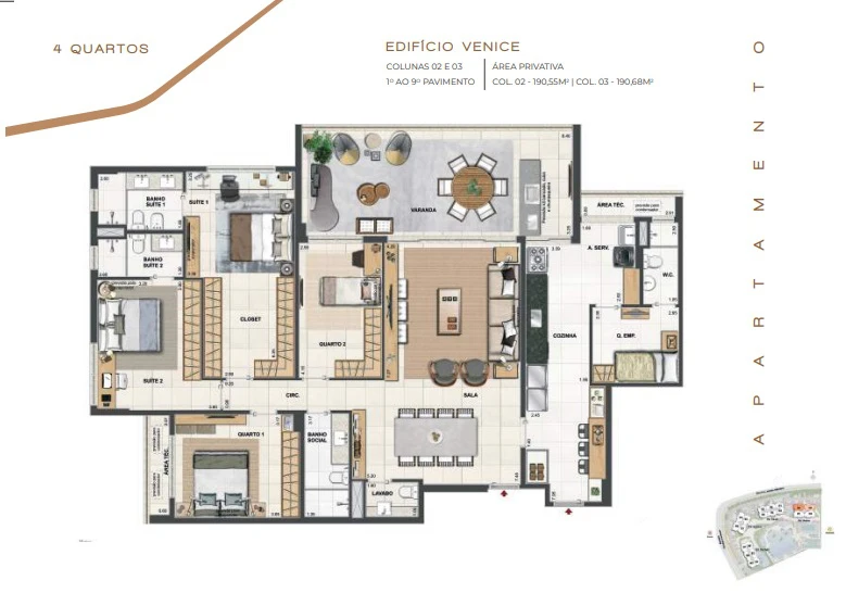 Apartamentos de 4 quartos com 156m² até 190m².