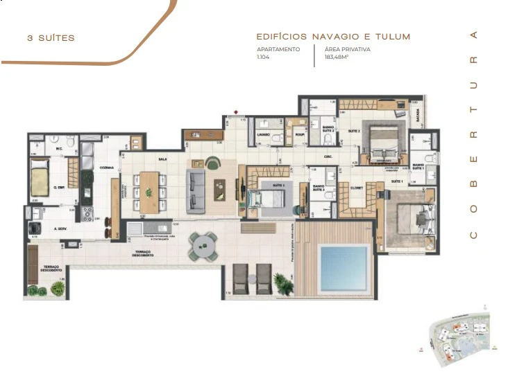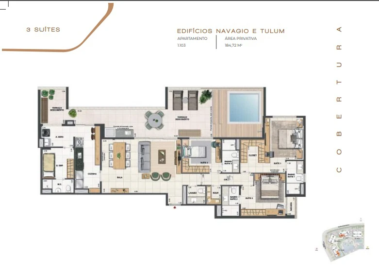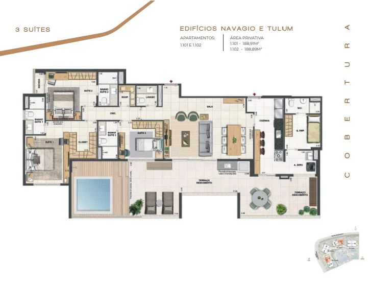 Coberturas Lineares com 3 suítes com 183m² até 189m².