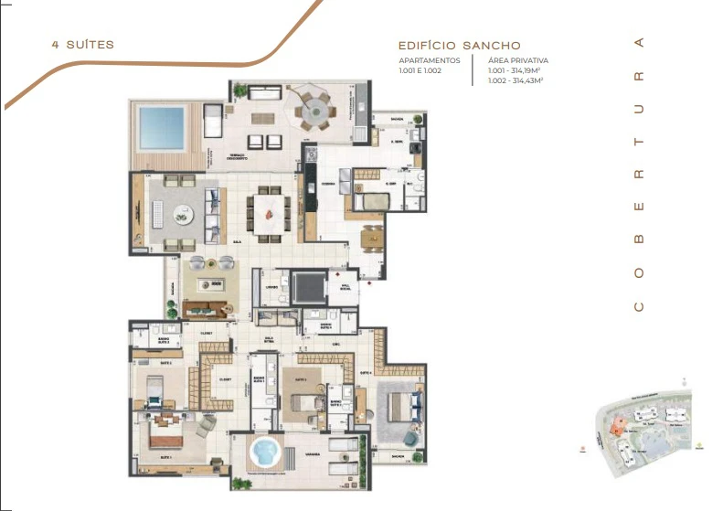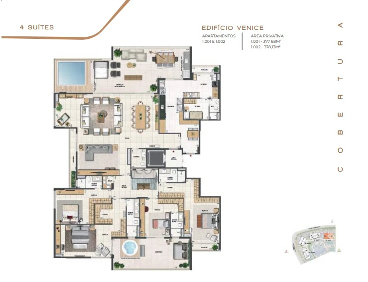 Coberturas Lineares com 4 suítes com 314m² até 378m².